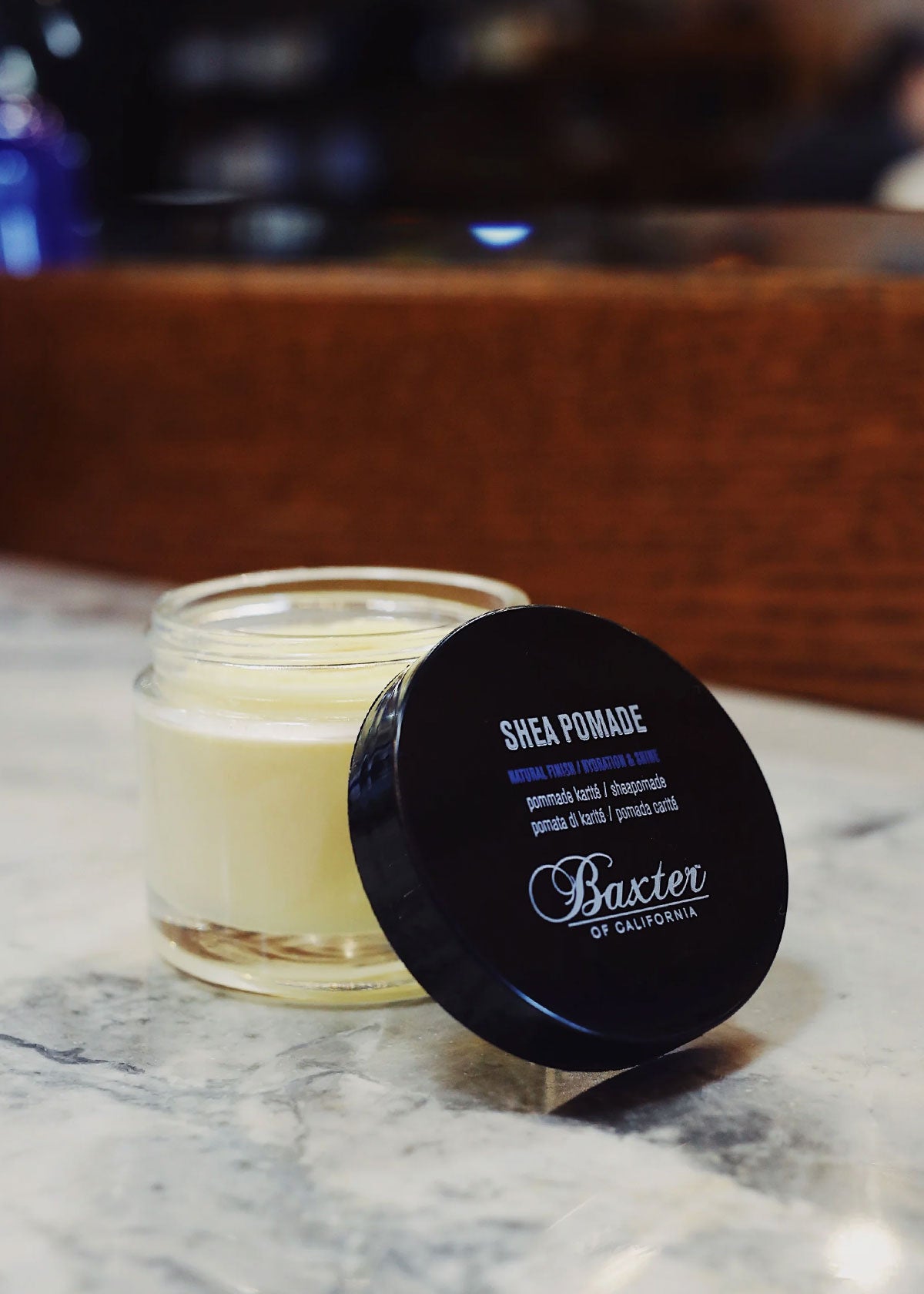 Die Baxter of California Shea Pomade hat eine besonders reichhaltige, feuchtigkeitsspendende und pflegende Formel. Das Haarstyling für Männer eignet sich optimal für trockenes, kräftiges Haar mit Struktur. Eine Kombination natürlicher Inhaltsstoffe nähren Haar & Kopfhaut und verleihen einen geschmeidigen Glanz.